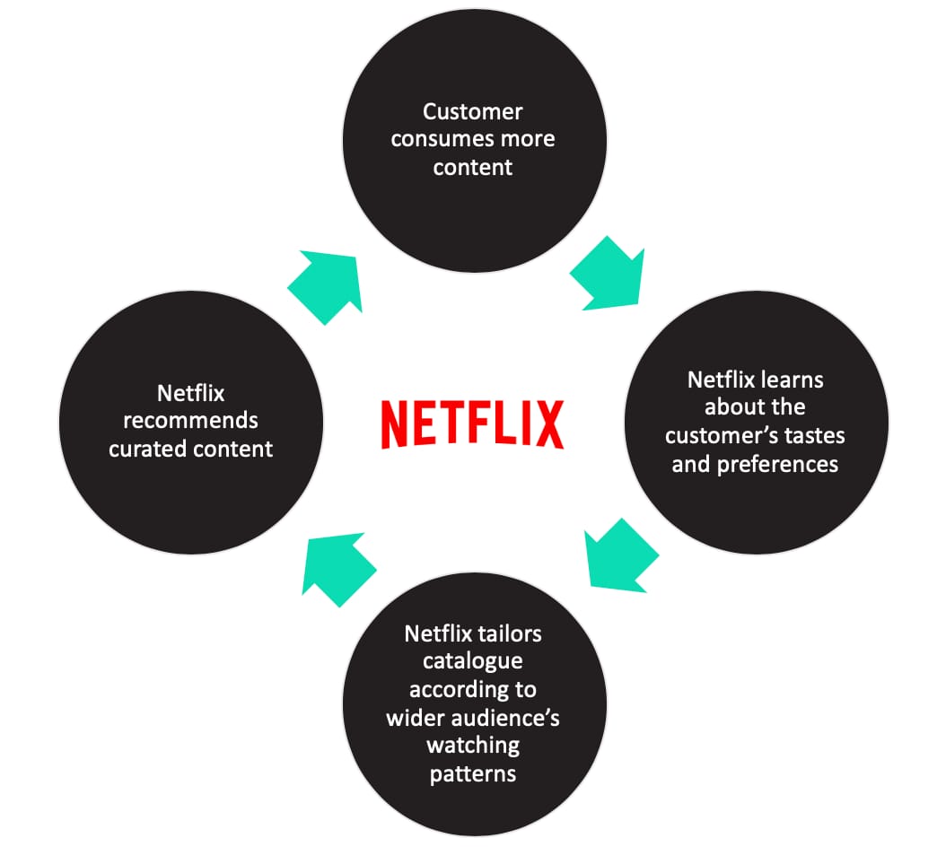 But, don’t just take my word for it. Let's look at Netflix. Once upon a time, Netflix faced a massive challenge of getting eyeballs on its growing library of content. Enter their Growth Loop. When a user watched a show and rated it, Netflix used this data to improve its recommendation engine. The better the recommendations, the more content users watched, and the more data Netflix gathered to perfect its algorithm. In turn, users found content that kept them glued to the screen, spending more time on the platform, and more users flocked in to experience this personalized content haven. And thus, a self-perpetuating growth loop spun into motion, turning Netflix into the global streaming giant it is today.