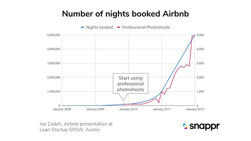 In my opinion, THIS is the REAL story of how growth hacking made AirBnB into what it is today. The Craigslist hack was clever and it for sure paved a way, but the discovery that professionally photographed listings could boost so many metrics is even truer to what it means to hack growth.